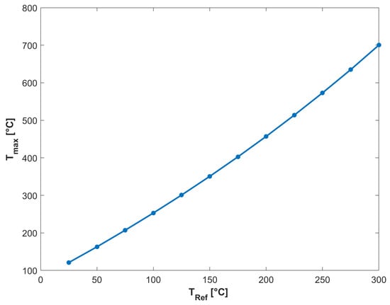 Evolution of the maximum operating temperature at a Tref of 25 °C.