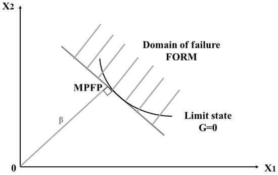 where represents the reduced centered normal distribution function. The FORM method consists of replacing the boundary state surface by the tangent hyperplane at the design point (Figure 5). However, when the the performance function is strongly nonlinear, this approximation can result in an incorrect probability of failure.