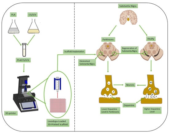 Levodopa-Loaded 3D-Printed Poly (Lactic) Acid/Chitosan Neural Tissue Scaffold as a Promising Drug Delivery System for the Treatment of Parkinson’s Disease