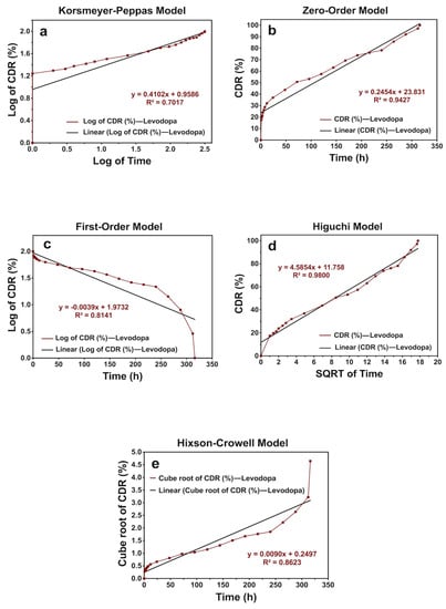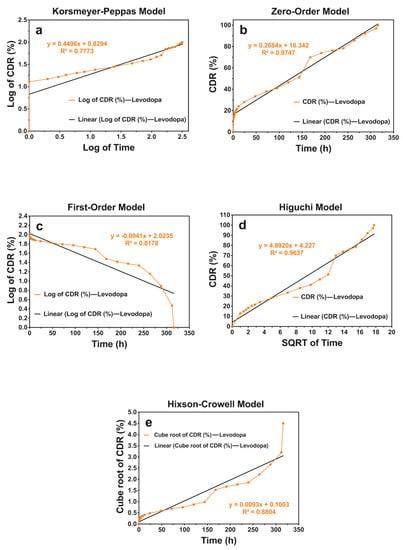 | Korsmeyer–Peppas | Zero-Order | First-Order | Higuchi | Hixson–Crowell | ||||||