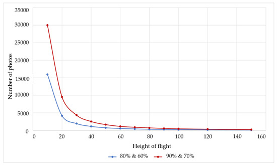 The number of images collected depending on the flight altitude and the overlap percentage.