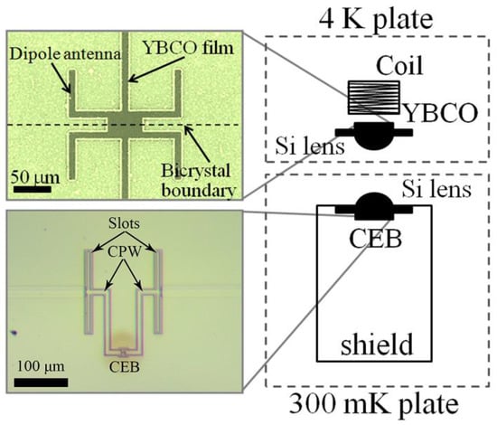 - Beiranvand, B.; Sobolev, A.; Larionov, M.; Kuzmin, L. A Distributed Terahertz Metasurface with Cold-Electron Bolometers for Cosmology Missions. Appl. Sci. 2021, 11, 4459. [Google Scholar] [CrossRef]