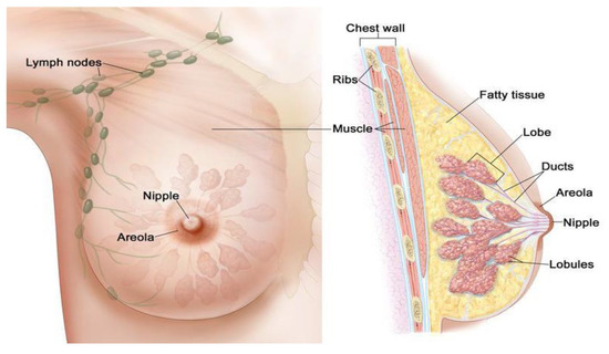 Common cancer incidence locations in female breast [19].
