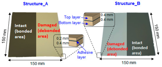 - Na, W.S. Low cost technique for detecting adhesive debonding damage of glass epoxy composite plate using an impedance based non-destructive testing method. Compos. Struct. 2018, 189, 99–106. [Google Scholar] [CrossRef]
