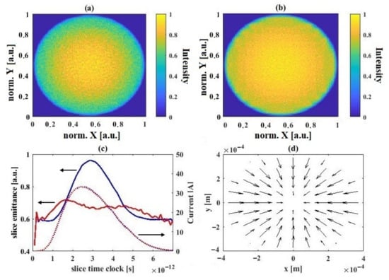 - Zhou, F.; Brachmann, A.; Emma, P.; Gilevich, S.; Huang, Z.R. Impact of the spatial laser distribution on photocathode gun operation. Phys. Rev. Accel. Beams 2012, 15, 090701. [Google Scholar] [CrossRef]