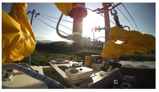 - Maruyama, Y. Robotic applications for hot-line maintenance. Ind. Robot. Int. J. 2000, 27, 357–365. [Google Scholar] [CrossRef]