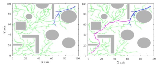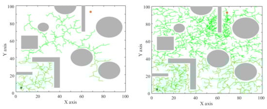 - Karaman, S.; Frazzoli, E. Sampling-based algorithms for optimal motion planning. Int. J. Robot. Res. 2011, 30, 846–894. [Google Scholar] [CrossRef]