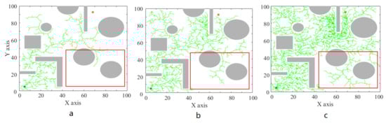 - Yershova, A.; Jaillet, L.; Siméon, T.; LaValle, S.M. Dynamic-domain RRTs: Efficient exploration by controlling the sampling domain. In Proceedings of the 2005 IEEE International Conference on Robotics and Automation, Barcelona, Spain, 18–22 April 2005; pp. 3856–3861. [Google Scholar]
