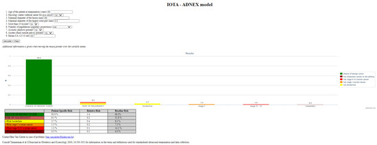 ADNEX is available for free online as an application on smartphones http://www.iotagroup.org/adnexmodel/ (accessed on 17 June 2021) and, in addition to this, newer ultrasound machines have been incorporating this algorithm.