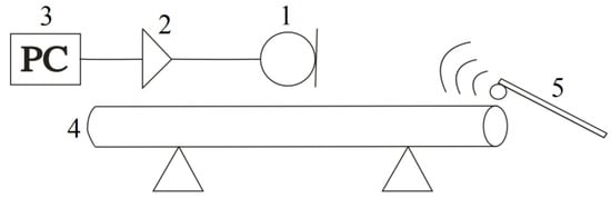 IET apparatus (1—microphone, 2—preamplifier, 3—personal computer, 4—sample, 5—hammer).