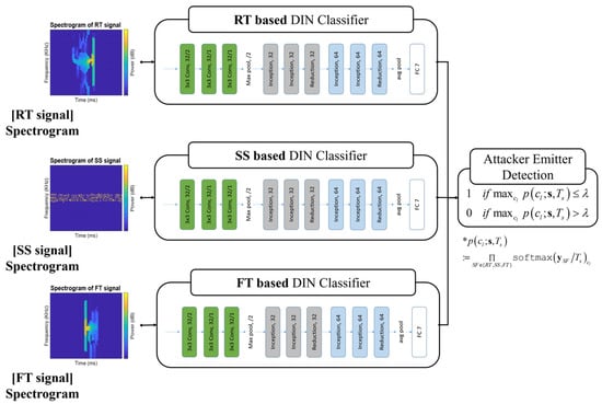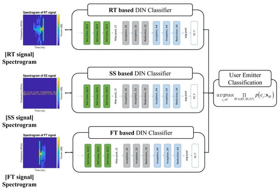 - User emitter classification: Classification is a decision process in which an emitter ID can be estimated from an input feature. A classifier was trained and tested on a large set of extracted features. Subsequently, the emitter ID was estimated from the classifier output vector. In this study, we consider a discriminative classifier model from a support vector machine (SVM) to a DIN-based ensemble classifier.