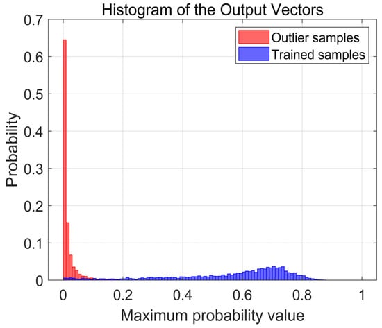 - Attacker emitter detection: This detection process enables the classifier to search whether the input feature has been trained for the classifier. The difference between the classifier output characteristics of the trained and outlier samples can be utilized. In this study, a simple but effective threshold based approach was applied.