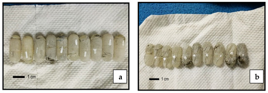- Gruyaert, E.; Van Tittelboom, K.; Sucaet, J.; Anrijs, J.; Van Vlierberghe, S.; Dubruel, P.; De Geest, B.G.; Remon, J.P.; De Belie, N. Capsules with evolving brittleness to resist the preparation of self-healing concrete. Mater. Construcción 2016, 66, e092. [Google Scholar]
