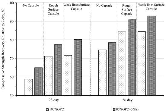 | 100%OPC 1 95%OPC + 5%SF 1 | Strength recovery | Compressive strength test | Cement paste |