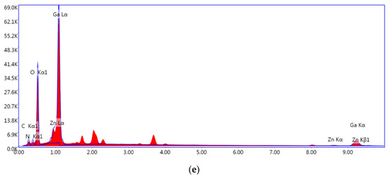 The 10 wt% solution of PAN (Mw = 150,000 g·moL−1) was prepared by dissolving it in N,N-dimethylformamide (DMF). An appropriate amount of Ga(NO3)3·xH2O and Zn(NO3)2·6H2O with a mole ratio of Ga to Zn = 1:1 was mixed into the as-prepared PAN solution with a weight ratio of PAN to salt of 4:1. Then, it was vigorously stirred at an ambient temperature for 5 h with the purpose of forming a homogeneous and translucent precursor solution. After, the solution was delivered by syringe with a flow rate of 0.6 mL·h−1 and using a high voltage of 28.5 kV, and the distance between the needle tip and the collector was 15 cm. Herein, the obtained Ga(NO3)3-Zn(NO3)3/PAN nanofiber was preserved in a desiccator at room temperature.