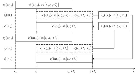 In the prediction time domain , the estimated control sequence consists of two parts. In the time domain , the first part is the optimal control sequence of the previous prediction time domain , while in the time domain , the second part is the optimal control sequence derived from at the time . The expression of is as follows: