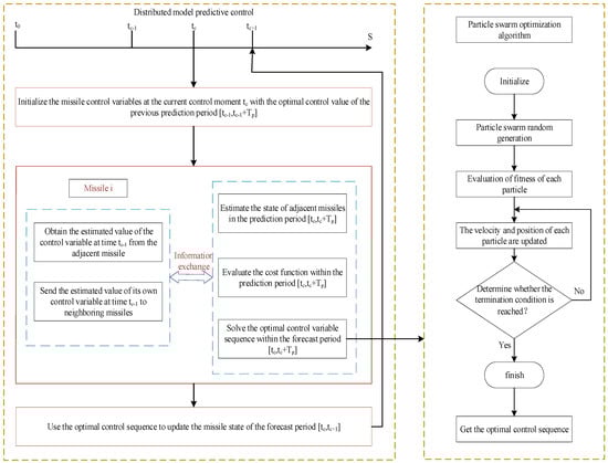 The basic principle of the PSO-based distributed cooperative model prediction framework for multiple missiles is shown in Figure 6. The cost function of the cooperative control of missiles includes two parts, namely, the operation function, F, and the final state function, :
