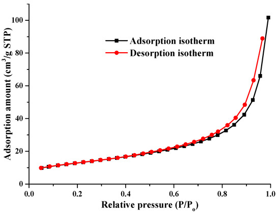 Adsorption–desorption isotherm of red clay (0.25 mm).