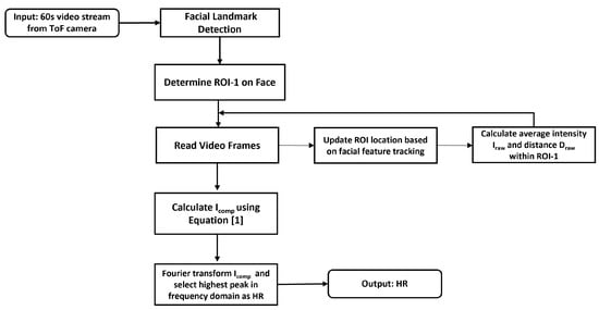 37]; (b) the intensity across pixels within ROI-1 is averaged; (c) within a time window, using the relationship described in Equation (