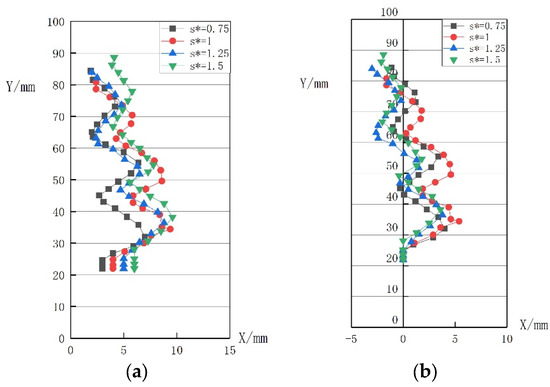 Bubble motion path diagram under different S*: (a) Different initial position, (b) Same initial position.