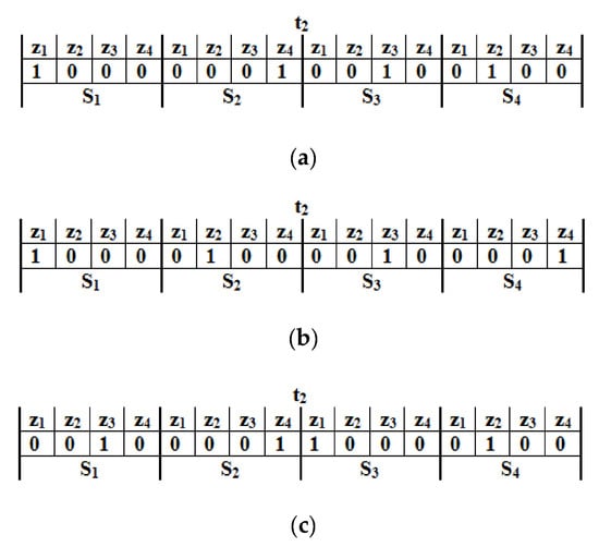 In this section, a simplified example shown in Figure 6 is explained walking through node deployment step by step to understand better how the constraints work and how the optimal deployment is performed. The example is used to illustrate the deployment of four sensors, S1, S2, S3, and S4, of four zones Z1, Z2, Z3, and Z4, which is monitored for two-time intervals t1 and t2. Table 3 shows the residual energy of each sensor node before and after movement, providing the movement distance and residual energy.