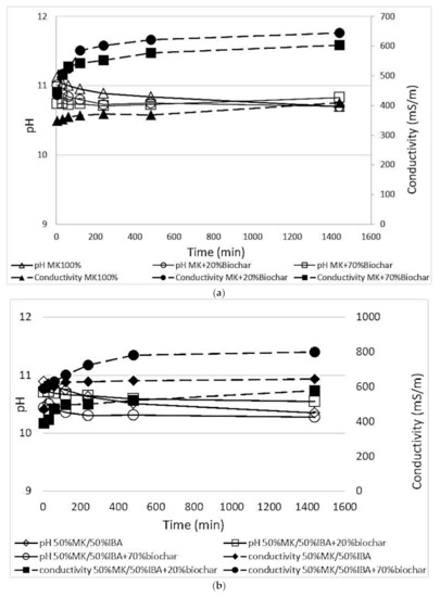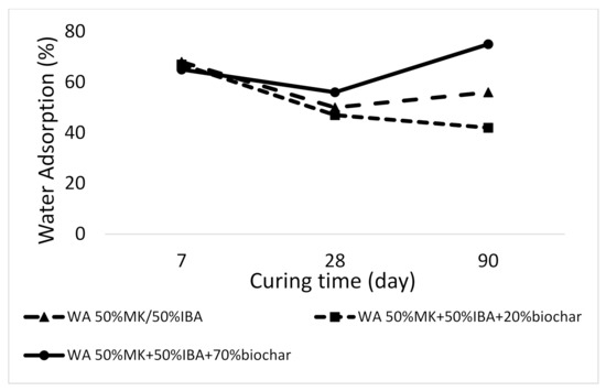| 50% MK-50% IBA + 50%biochar | 30.43 ± 0.3201 |