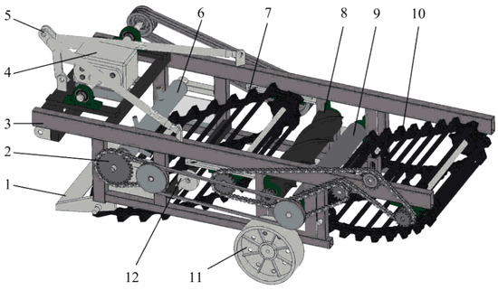 - Zhou, J.; Yang, S.; Li, M.; Chen, Z.; Zhou, J.; Gao, Z.; Chen, J. Design and Experiment of A Self-Propelled Crawler-Potato Harvester for Hilly and Mountainous Areas. INMATEH-Agric. Eng. 2021, 64, 151–158. [Google Scholar] [CrossRef]