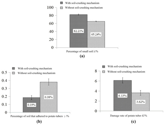 - The application of the soil-crushing mechanism with toothed roller improved the separation effect, whereas it caused more potato tuber damage.