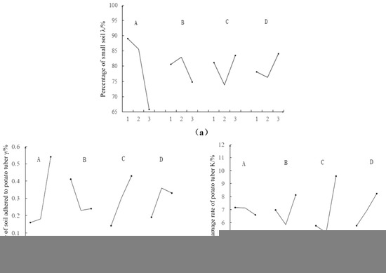 | Percentage of soil adhered to potato tuber γ/% | A | 0.279 | 2 | 0.140 | 5.899 | ⊙ |