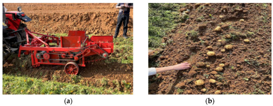 - As revealed from the result of field experiments, the visible potato rate took up 94.31%, the damage rate of potato was 0.89%, which indicated that the new type of potato harvester proposed in this paper can meet the requirement of harvesting potato in winter idle paddy fields in south of China, and provide equipment support for potato harvest under sticky soils condition.
