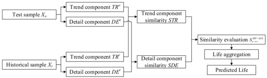 The rest of this paper is organized as follows. The background knowledge of the similarity measurement method based on morphological pattern and symbolic aggregate approximation (MP-SAX) is described in Section 2. In Section 3, the proposed method is described in detail. The dataset and problem in life prediction under multiple operating conditions are illustrated in Section 4. In Section 5, the results and discussion of the proposed method are explained to verify the effectiveness of the proposed method. Finally, the conclusion of this paper is drawn in Section 6. The meaning of all acronyms are listed in Table A1 in Appendix A.
