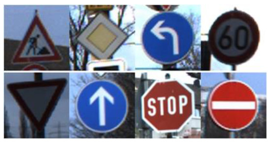 - Stallkamp, J.; Schlipsing, M.; Salmen, J.; Igel, C. Man vs. computer: Benchmarking machine learning algorithms for traffic sign recognition. Neural Netw. 2012, 32, 323–332. [Google Scholar] [CrossRef]