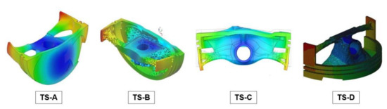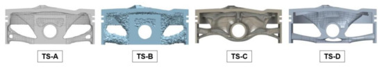 The Topology Optimization results respectively from TS-A, TS-B, TS-C and TS-D.