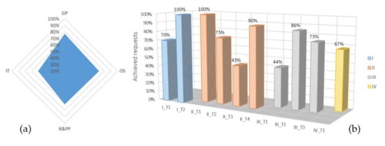 Values related to the different phases that compose the workflow can be obtained, as well as summary data of the evaluated TS, such as the number of Investigated Requests and Achieved Requests. For each TS, starting from considering Requests (see Section 2.3, Table 3), Investigated Requests is a subset representing the number of Requests that are answered during the investigation, whereas Achieved Requests is a further subset bringing the number of Requests that are satisfied. Then, to evaluate and pair these results, a percentage of Achieved Request (AR%) can be calculated. In this way, software behavior along the process becomes immediately visible.