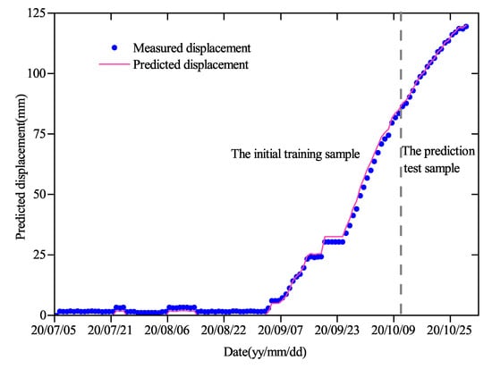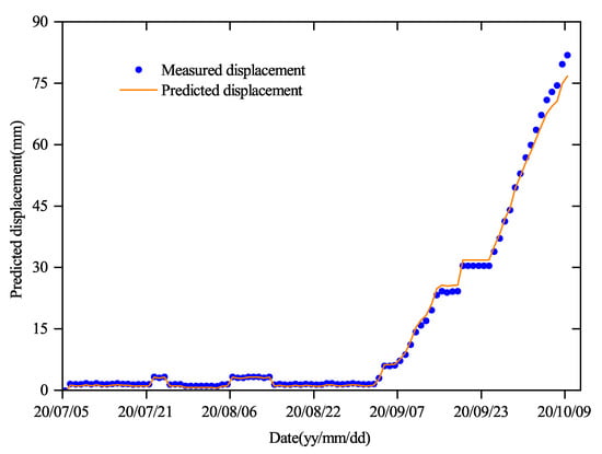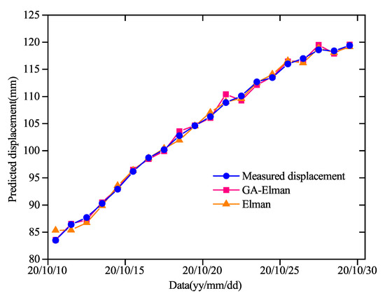 Prediction and comparison of measured displacement and predicted displacement by GA-Elman model.