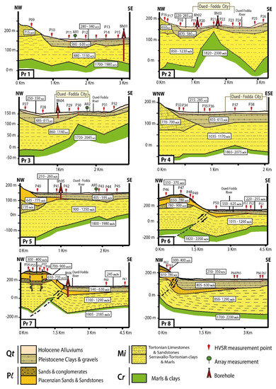 On the Sara-El-Maarouf anticline, in the profiles Pr6, Pr7, and Pr8 (