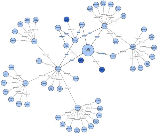 More recent studies, such as Valls et al. [18], entrusted their research to word ontologies, such as WordNet [19], applying clustering based on ontologies, determining the motivations of tourists when visiting a destination. OnTraNetBD [20] also used WordNet for mapping the key concepts to build the ontology using the Domain, Entity Classes, Relations, and Attributes (DERA) methodology [21] in six phases: identify atomic concepts, analysis, synthesis, standardization, ordering, and formalization. From WordNet and Wikipedia were derived Yet Another Great Ontology (YAGO) [22], which uses a logical model, capable of representing n-ary relations maintaining compatibility with the RDFS. In this sense, Reference [23] developed a system that supports different types of document formats, including the essential structures of textual documents and native forms of the web. In the paper, the authors compared the results of the semantic annotation approach with other popular methods (Armadillo, CERNO, CREAM, EVONTO, GoNTogle, KIM, MnM, Onto-Mat, and S-CREAM). Ontologies based on words use relations between elements, for instance, Llorens et al. [24] called the words “terms” and established the relationships among the terms as the entity relationship model of the UML diagrams in software engineering.