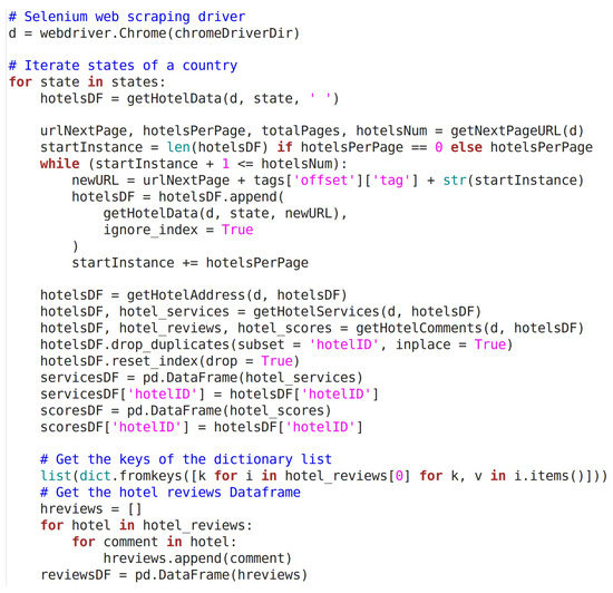 SigTur/E-Destination [28] is a project that, from the knowledge management point of view, through a specific domain ontology, provides information on activities and guides aimed at the user and for employees. The system considers as much information as possible (demography, spatial, travel, motives, user stereotypes) to make the recommendations. We were also motivated to gather data from social networks, especially from OTAs or eWOMs, because they tagged tourist reviews. Some OTAs offer an API to consult these reviews, but it is necessary to develop tools that can collect those public reviews for others. For this purpose, we created a web scraping tool.