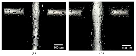 When measuring the surface roughness, it was found that the crystal size of the cured PCL could have an influence on the roughness. When comparing the crystal sizes, it is noticeable that they are very different. This depends on the crystallization conditions. According to the classical crystallization theory, Koltzenburg et al. [22] describe crystallization in two stages: via nucleation and subsequent growth. The amount of nuclei formed determines how many crystals are formed. Since the polymer chains in the melt are interlocked, crystallization proceeds relatively slowly and can therefore be controlled primarily by the cooling rate. In the case of rapid cooling, a large number of crystallization nuclei form in the material, resulting in many small crystals. In addition, the amount of nuclei can be controlled by so-called nucleating agents. Nucleating agents are substances that can drive the formation of nuclei. The different crystal size in this work could therefore either be due to temperature changes (in the environment, cartridge or platform), or with the cleaning of the printing instruments with chloroform. Smallest residues in the cartridge could change the crystal formation.