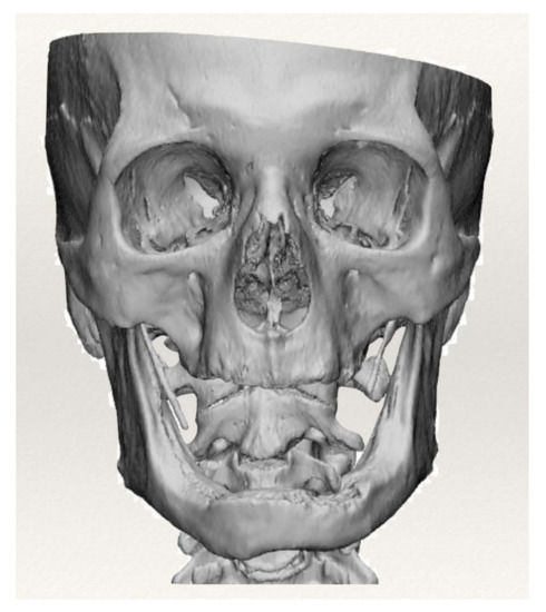 All patients underwent a CT scan examination and the images obtained were saved in DICOM (Digital Imaging and Communication in Medicine) format. Using the Mimics (Materialize) software, the images were segmented, and the bone tissue was isolated from the soft tissues. Segmented images made it possible to reconstruct the 3D model of each patient’s bone tissue (Figure 1).