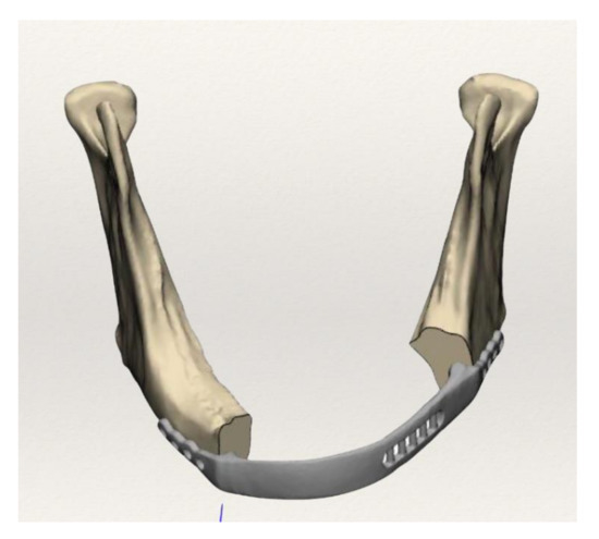 - Bedogni, A.; Bettini, G.; Ferronato, G.; Fusetti, S.; Saia, G. Replacement of fractured reconstruction plate with customized mandible implant: A novel technique. Laryngoscope 2014, 124, 401–404. [Google Scholar] [CrossRef]