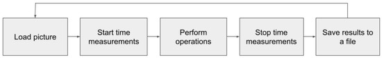 Time performance measurements for both image analysis steps (bee identification and the V. destructor mite detection) were performed according to a similar schema presented in Figure 7. The step Perform operations stands for image segmentation (bee identification) process and image classification for the Varroa detection process. Time measurements covered the TPU inference for a particular step.