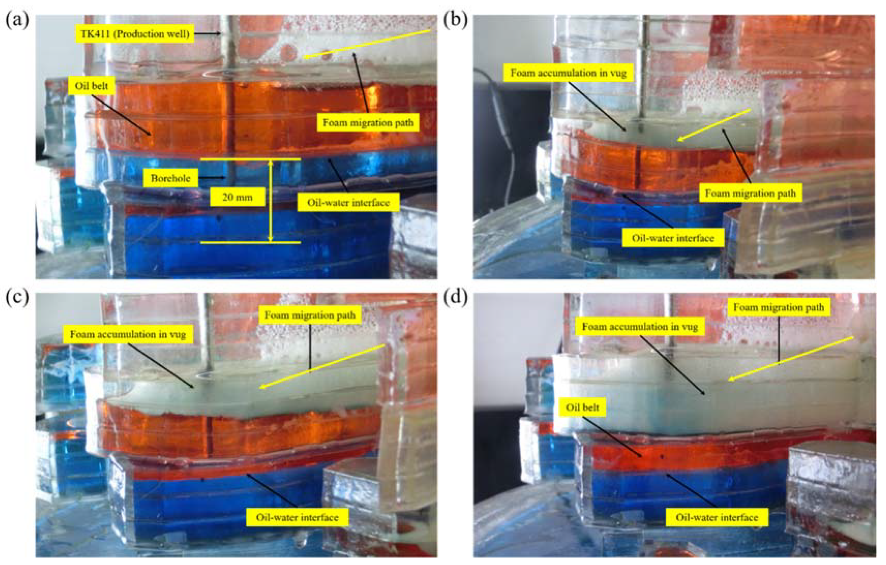 - Singh, R.; Mohanty, K.K. Foam flow in a layered, heterogeneous porous medium: A visualization study. Fuel 2017, 197, 58–69. [Google Scholar] [CrossRef]