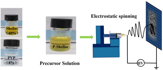 Firstly, shellac and PVP powder were separately dissolved in ethanol to prepare shellac (40% w/w) and PVP (8% w/w) solutions. Secondly, P-Shellac solution was prepared through mixing the two solutions by a weight ratio of 3:1 (40% w/w shellac to 8% w/w PVP). Thirdly, the mixed solution was stirred at 50 °C for 12 h to achieve a uniform P-Shellac solution.