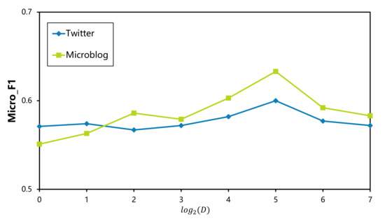 The impact of D is explored, which is an important hyperparameter on the prediction performance of SAEP. Figure 11 shows the effect of D on model prediction performance on two datasets. In Figure 11, the prediction performance changes as the hyperparameter varies. It should be noted that in Figure 11, if the cell size D is too small or too large, the prediction micro F1 of SAEP tends to worsen. This indicates that selecting a proper cell size D is crucial for model performance.