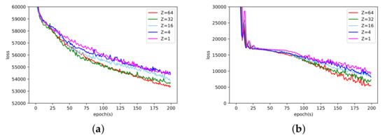 Here, an experiment was conducted to observe the effect of varying values of the hyperparameter Z on the learning process. Figure 13a,b show the learning curves. It can be seen that the proposed model has a faster convergence while memory size Z increases on both datasets. Specifically, notice that fails to fit the data distribution. When the Z value increases, the SAEP model representation ability is enhanced, which significantly speeds up the inference process.