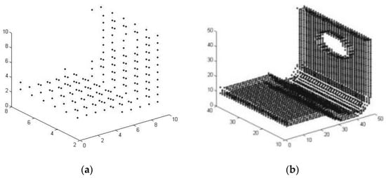 - 3D collision detection: 3D collision detection in virtual reality and 3D games are the common technique used in the literature [25], which is based on collision detection to realize the physical phenomena. However, in our approach, a subspace was regarded as another 3D model or object, and a collision between two objects was measured. Then, each subspace with or without a collision was labeled to obtain a sampling matrix. Figure 3 shows an explanation for why we required collision detection between a 3D model and its sampling subspaces.