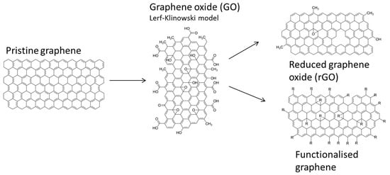 Structure of pristine graphene, GO, rGO, and functionalised graphene. Sourced and adapted with permission from Ref. [17].