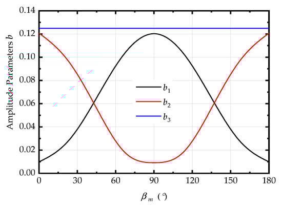 When βm = π/2 in Equation (15) and αm = 0 in Equation (16), then b2 = b3. Equation (19) is simplified into the following equation.