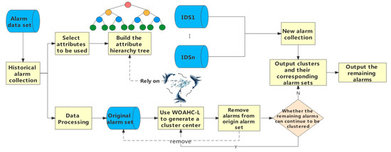 In the previous section, we gave an overview of several categories of methods for dealing with redundant alarms. In this section, we mainly discuss hot approaches for dealing with alarm problems in recent years and explore the application of heuristic algorithms (such as WOA) in dealing with alarm problems in the intrusion detection domain. Firstly, we introduce the research results of scholars on alarm problems of the past few years. Wang et al. [30] proposed a framework to improve the intelligent false alarm reduction for DIDS based on edge computing devices. They built a false alarm filter by using machine learning classifiers, which can select an appropriate algorithm to maintain the filtration accuracy. Toldinas et al. [31] proposed a new image recognition method using multi-level deep learning to solve the problem of intrusion detection system identification of network attacks. They converted network features into four-channel images that were used to train and test the pre-trained deep learning model ResNet50. Kinghorst et al. [32] introduced a pre-processing step in the process of alarm flood analysis to enhance the robustness of the alarm system in dealing with the random alarm or interference alarm mode through probability calculation of alarm correlation. Fahimipirehgalin et al. [33] proposed a data-driven method, using alarm log files to detect the causal sequence of alarms. In this method, an efficient alarm clustering method based on the time distance between alarms is proposed, which is helpful to preserve adjacent alarms in a cluster. To solve the problem of a large number of redundant alarms generated by IDS, Sun and Chen [1] proposed an alarm aggregation scheme based on the combination of conditional rough entropy and knowledge granularity. Based on this scheme, the weights of different attributes in the alarms were obtained, and the similarity values of the alarms were calculated within the sliding time window to aggregate the similar alarms to reduce redundant alarms.